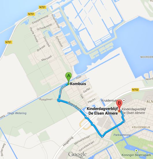 Van de Noorderplassen Almere naar Kinderdagverblijf De Elsen